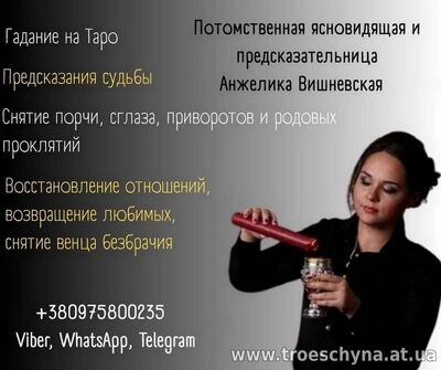 Мене звати Вікторія. Я займаюся ворожінням і любовної магії і допомагаю людям розібратися в почуттях, відносинах і складних жи